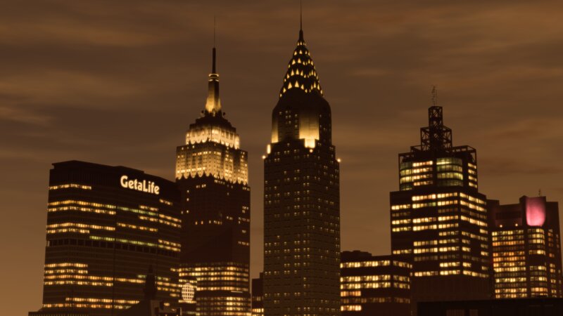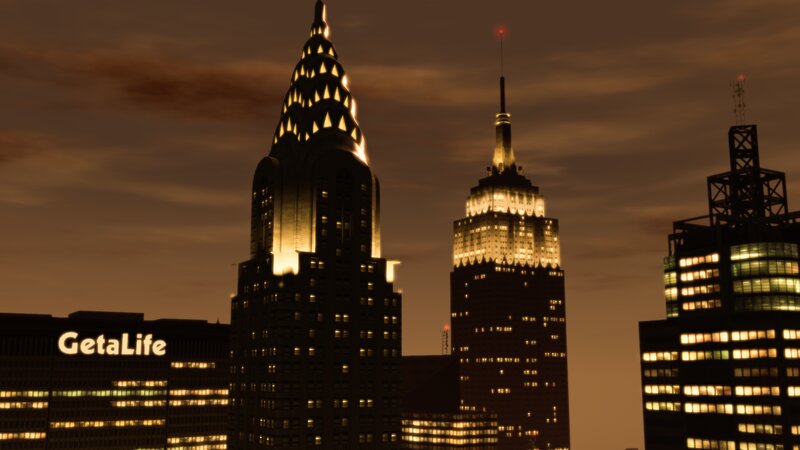 Changes the lights of the Art Deco skyscrapers to closely resemble their real-life counterparts.