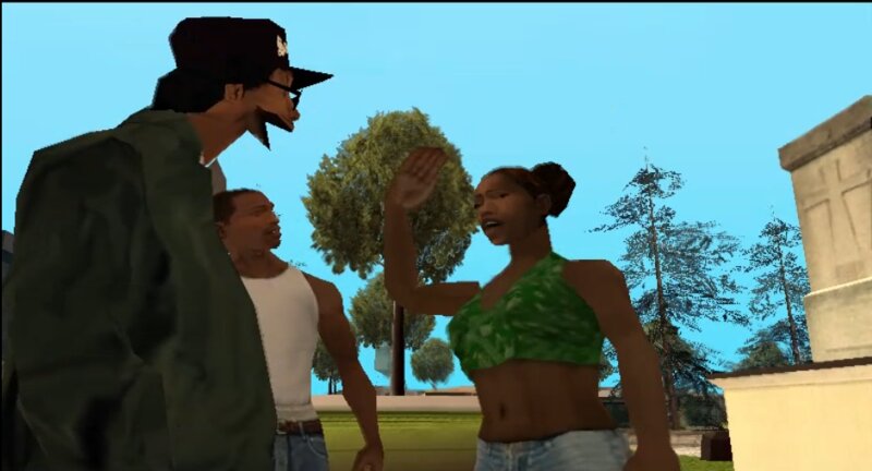 About a hidden skin that was not shown in the original game. ryder face is distorted and his mouth resembles a duck's mouth.
